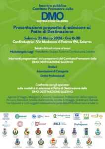 In questo contesto è stato costituito il Comitato Promotore della DMO “Destinazione Salerno”, con l’obiettivo di creare un sistema turistico territoriale unitario, capace di valorizzare in modo coordinato le risorse culturali, ambientali, enogastronomiche e produttive dell’area.